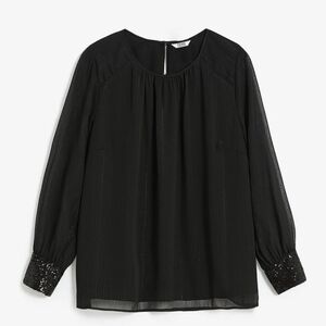 Penningtons Black Long Sleeve Sheer Blouse Top Metallic Sequins Sequined