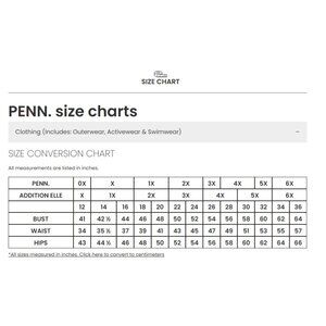 Penn. size chart on last slide. The 5" inseam might feel too short if you are a bit bigger on the inner thigh, but the waist and hip fit true to size.