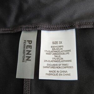 These are brand new black swim shorts from Penningtons, size 3X. They're perfect for wearing with your favourite tankini or bikini top. The shorts have a comfortable, wide elastic waistband and are made from a stretchy blend of 83% nylon and 17% elastane, with a waist lining of 77% nylon and 23% elastane. These shorts are a practical and stylish choice for any water activity.