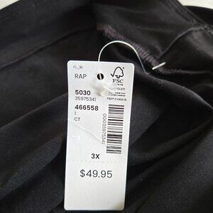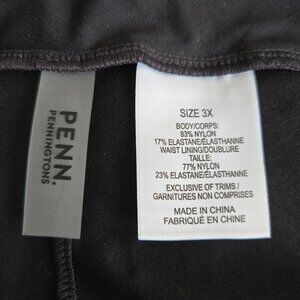 These are brand new black swim shorts from Penningtons, size 3X. They're perfect for wearing with your favourite tankini or bikini top. The shorts have a comfortable, wide elastic waistband and are made from a stretchy blend of 83% nylon and 17% elastane, with a waist lining of 77% nylon and 23% elastane. These shorts are a practical and stylish choice for any water activity.