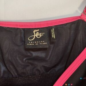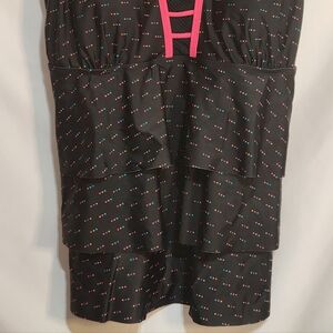 Penningtons Black Tankini with Barbie Pink Polka Dots Size 1X Ruffles Summer