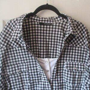 Penningtons Blue Plaid Top w/ White Panel Plus Size 22
