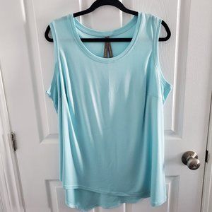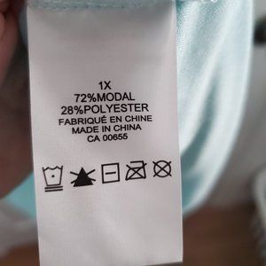 Never worn. Very pretty light blue colour. Top is asymmetrical (longer on one side at the back) which gives a flattering effect.