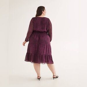 Pennington’s Floral Long-Sleeve Tiered Midi Dress Size 1x