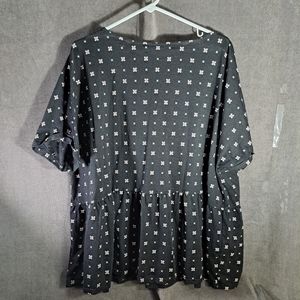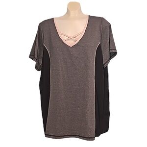 Penningtons In Every Story Black Pink Floral Shortsleeve Tee Peplum VG 4X