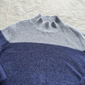 Penningtons Knit Colorblock Sweater | Cozy Blue Pullover | Top Organic Cotton 1X