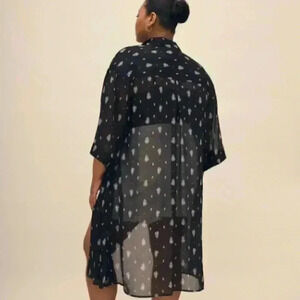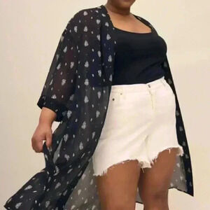 An overpiece with a million possibilities! This plus-size open-front kimono combines a flowy fit, a stylish print and a trendy tunic length, perfect to pair with your favourite summer outfits.