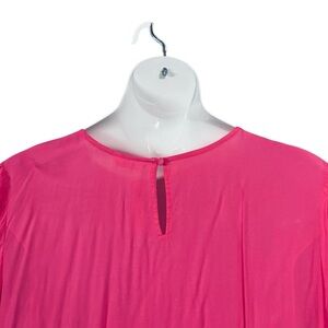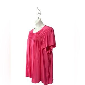 Brand new plus size blouse by Penn. (Penningtons), with original tag attached (original price: $59.95). Made of 100% viscose, this bright pink top features flattering front shirring and a lightweight drape. Comfortable, breathable, and feminine — perfect for warm days or layering. Keyhole button closure at the back.