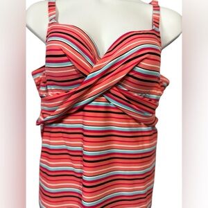 Step into summer with this vibrant plus size tankini featuring a flattering sweetheart neckline. The lively striped pattern in shades of orange, red, turquoise, and black adds a dynamic touch to your beachwear collection. Designed for both style and comfort, this tankini provides ample coverage while enhancing your natural curves. Adjustable straps ensure a perfect fit, making it a must-have for your next beach outing. Excellent condition π / π / Sea by Penningtons