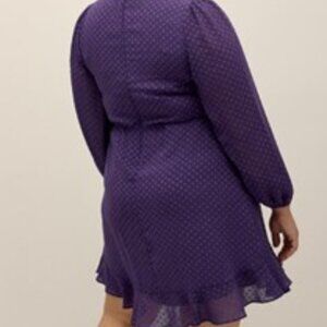 Penningtons Purple plus size Faux-Wrap Dress with Ruffled Tiered Hem size18 Get ready for compliments! This fit & flare plus-size faux-wrap dress with an all-over clip dot texture and gorgeous ruffled tiered hem is your go-to outfit for an attractive and flattering fit.