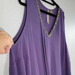 Penningtons Purple sleeveless blouse with crystal lined neckline. Elegant! EUC
