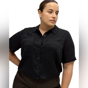 Opt for a sleek, military-inspired design that offers a bold and fashionable edge with this plus-size short-sleeve buttoned-down shirt. Made of responsible tencel fabric for an ultra soft feel and long-lasting wear, this casual top is comfortable, versatile and oh-so trendy.