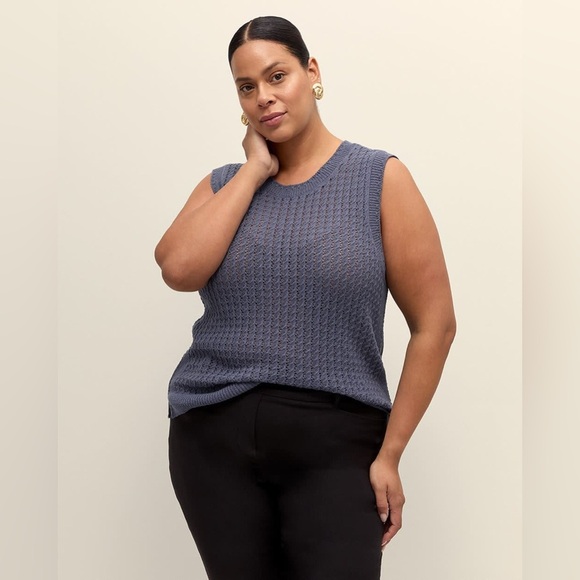 Penningtons Sleeveless Crochet Cotton Sweater Tank with Ribbed Bands Blue 4X NWT