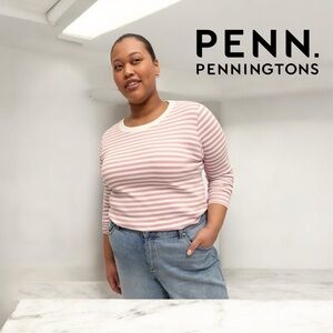Elegant striped sweater with crew neck. Soft fabric. Perfect for casual wear.