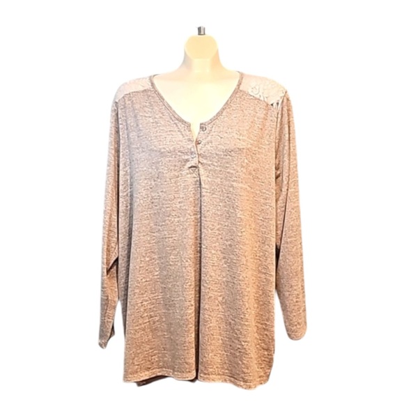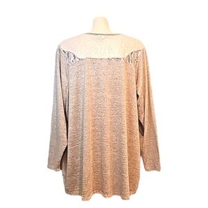 Features: Pennkngtons Top, Size 2XL. Grey, long sleeve, lace detail.