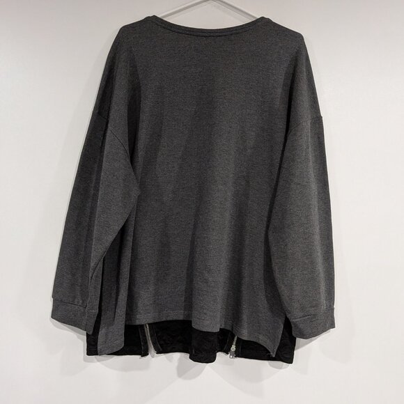 Penningtons Tunic Length Sweatshirt with Zipper Detail Black Grey Size 2X
