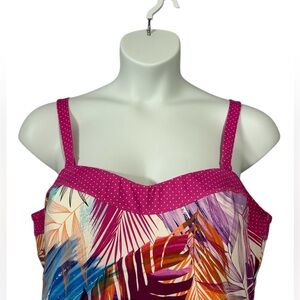 Penningtons, Vibrant Plus Size Tropical Tankini Top, 2X, Pink & Multicolor π΄