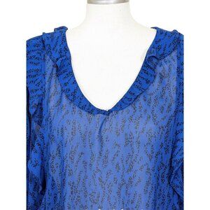 Penningtons Womens Plus Size 3X Blouse Chiffon Sheer Blue Animal Print Ruffle