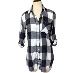 Pentagone Shirt Sz XS Black White Plaid Long Sleeve Button up Check Top