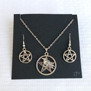 Pentagram Crow 17" Necklace & Earrings Jewelry set