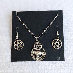 Pentagrams Crow 21" Necklace & Earrings Jewelry set