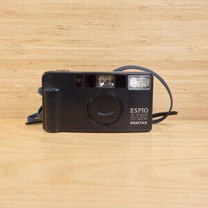 The Pentax Espio AF Zoom is a 35mm point-and-shoot film camera featuring a 35-70mm zoom lens with full macro capability.