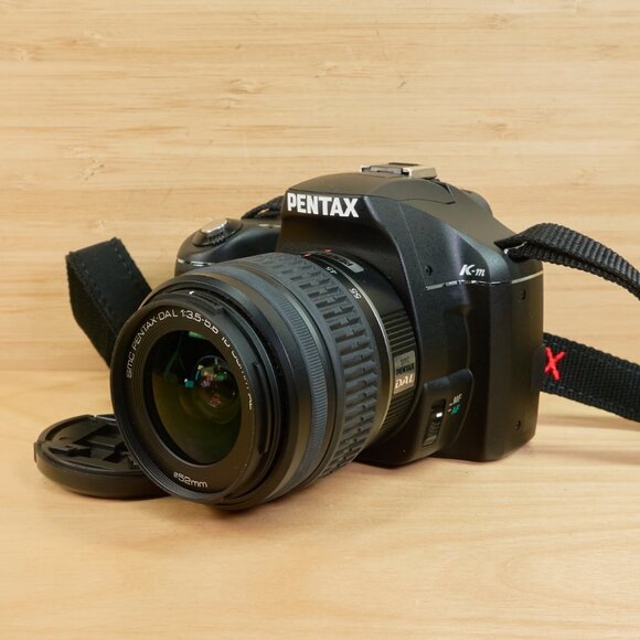 Pentax K-m (also known as the K2000) 10-megapixel digital SLR camera body, paired with two versatile Pentax DA lenses: 18-55mm f/3.5-5.6 AL and 55-200mm f/4-5.6 ED.