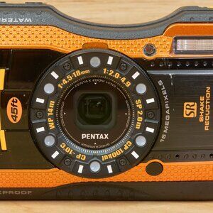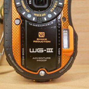 Pentax Optio WG-3 rugged digital camera in orange / 16MP resolution / waterproof, shockproof, and built for adventure.