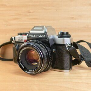 The Pentax Program Plus is a 35mm SLR film camera offering aperture-priority automatic exposure and full manual control.