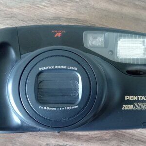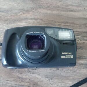 The PENTAX Zoom 105-R is a vintage 35mm film camera from Japan, known for its reliable auto focus and versatile 38-105mm zoom lens. Two CR123A batteries are required (not included) to power this classic camera, which is perfect for capturing memories in the analog format. This package includes a stylish black camera bag for easy transport and protection. Ideal for vintage photography enthusiasts or those looking to experiment with film, the PENTAX Zoom 105-R offers quality and convenience in a compact and classic design.
