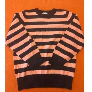 Pepaloves coral and black stripes fuzzy oversized sweater NWT