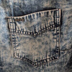 Pepe Jeans Acid Wash Button Down Shirt Pearl Button Snaps Western Retro Large
