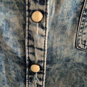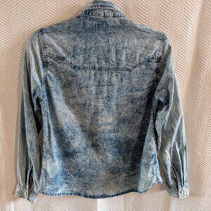 Western, 80's, Acid Wash, Denim, Tie Dye, Pearl snaps, Long Sleeve, Button Up, Casual Shirt, Retro, Vintage Inspired, Rock, Pepe Jeans, Pepe London, Jean Shirt, Large, Medium