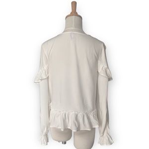 Beautiful peplum Blouse , elastic cuffs on sleeves with flare , embroidery like trim on front of blouse