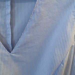 Beautiful pin stripe peplum shirt! Side zipper as pictured. Very fitting and flattering!