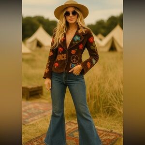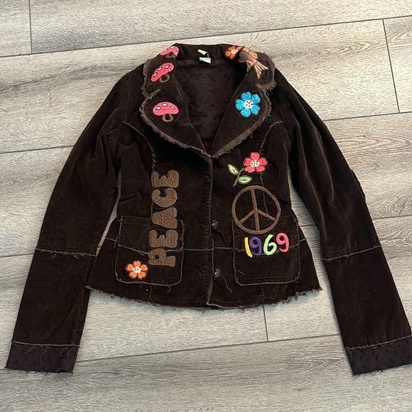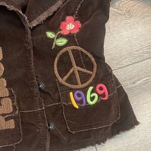 Pepper 1970’s brown corduroy embroidered button up blazer jacket small