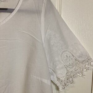 Peppercorn Women's White Cotton Blouse Lace Top Semi Sheer Size L