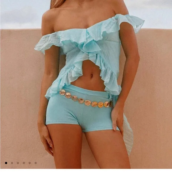Peppermayo Light Blue Ruffle Off-Shoulder Top