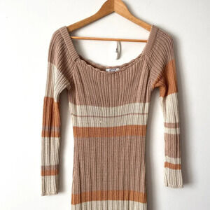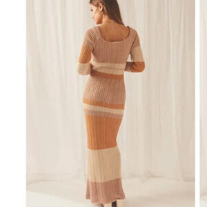 Peppermayo Scoop Neck Long Sleeve Crochet Maxi Dress Striped Neutral Size M/L
