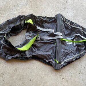 A water-resistant tunnel zipper allows hot air to vent out when unzipped and keeps you dry when zipped closed