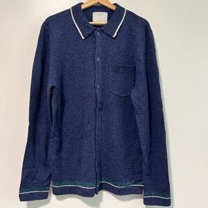 Percival Men’s XL Wool Cardigan - Navy Blue with Contrast Trim