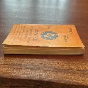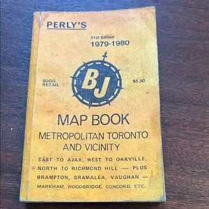 This handy map book was a staple in many glove compartments. Quick reference to streets for the reader to figure out how to get there. Many changes in neighbourhoods now, good coffee table book & conversational piece. This one is the 21st edition. Wear on cover though pages are in good condition.