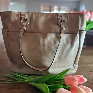 🌟 Perfect! COACH Madison Shiny Beige Leather Tote Shoulder Bag