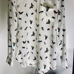 Perfect condition XS Equipment white silk insects button-up shirt !!