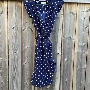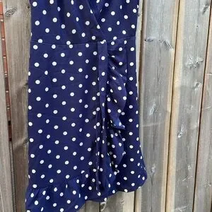 Cute polka dot transition dress for the fall! Faux wrap with ruffle and tie. PTP 19” Length 33” No stretch