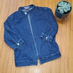 Lovely jean jacket with 3/4 length sleeves. Cute lil jean jacket, even has pockets!