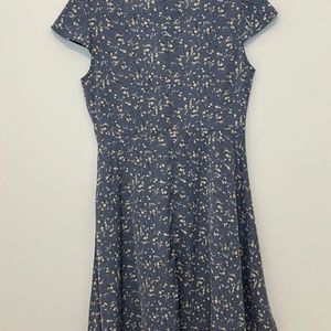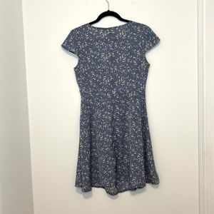 This beautiful dress is a beautiful periwinkle blue with mini white floral print. V-neck. Zips at back. Short sleeves. Size medium. US 6. Measures 34 inches long and 16 inches from pit to pit. Lightweight and breathable. Perfect for warmer weather.