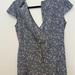 Periwinkle Blue Mini Floral Print Dress V-Neck Zipper Back Medium