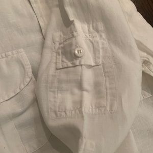 Gorgeous summer men's white long sleeve shirts with cargo pockets at the chest and on both sleeves. Made in Italy. Brand: Perkin's.