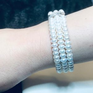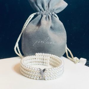 Perlaviva Freshwater Pearl 3-Row Coil X Bracelet